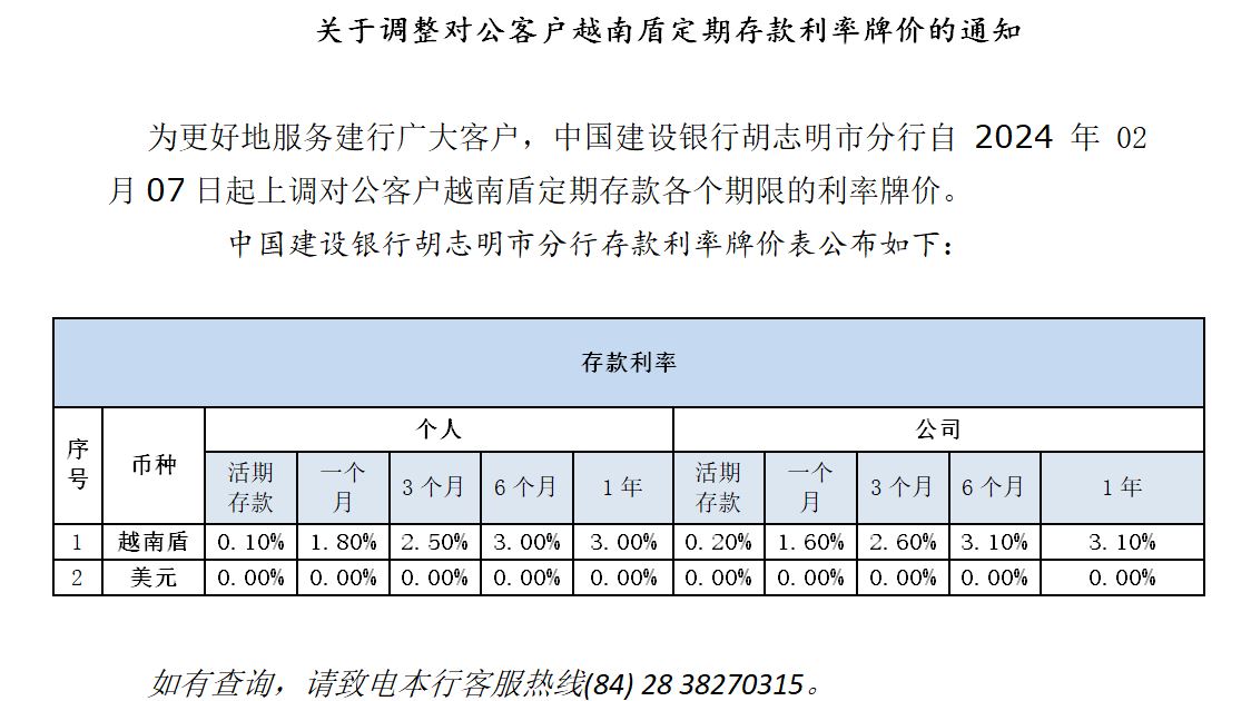 关于调整对公客户越南盾定期存款利率牌价的通知