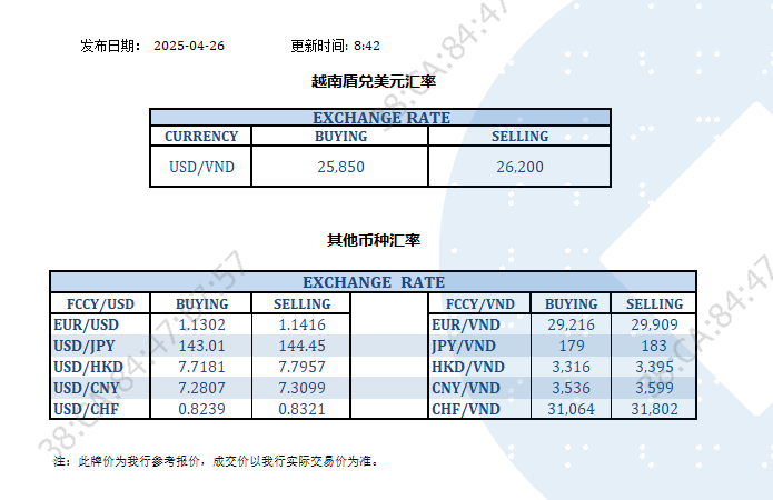 今日汇率 2025-04-26
