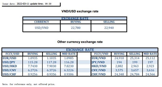 EXCHANGE RATE UPDATE 2022-03-11