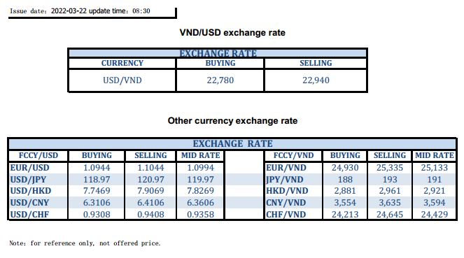 EXCHANGE RATE UPDATE 2022-03-22