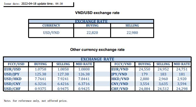 EXCHANGE RATE UPDATE 2022-04-18