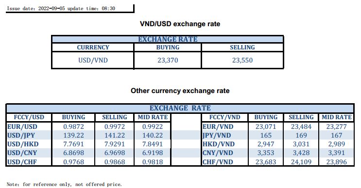 EXCHANGE RATE UPDATE 2022-09-05