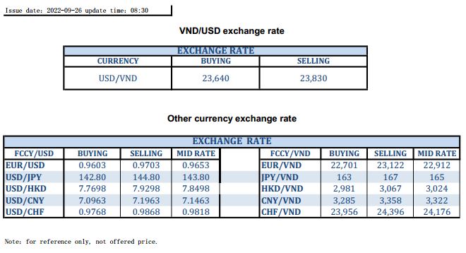 EXCHANGE RATE UPDATE 2022-09-26