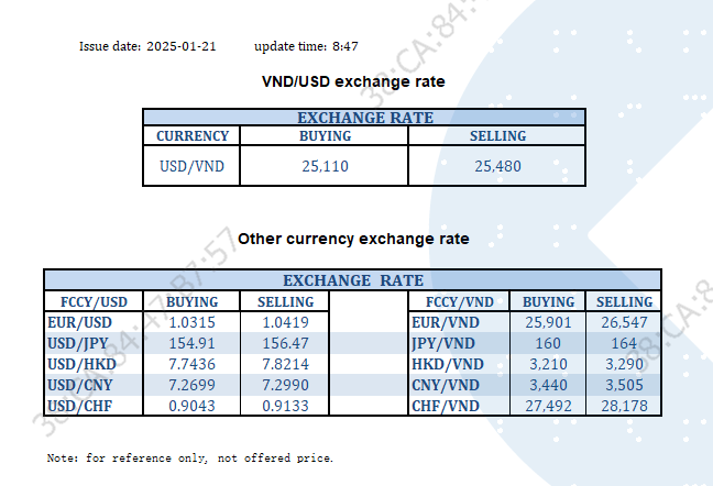 EXCHANGE RATE UPDATE 2025-01-21