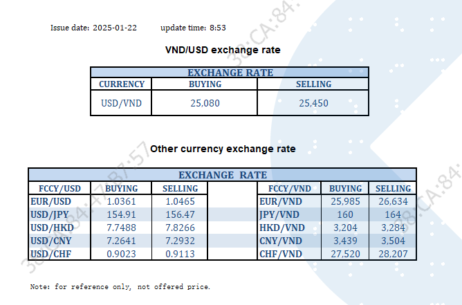 EXCHANGE RATE UPDATE 2025-01-22