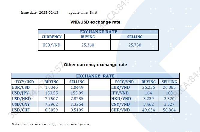EXCHANGE RATE UPDATE 2025-02-13