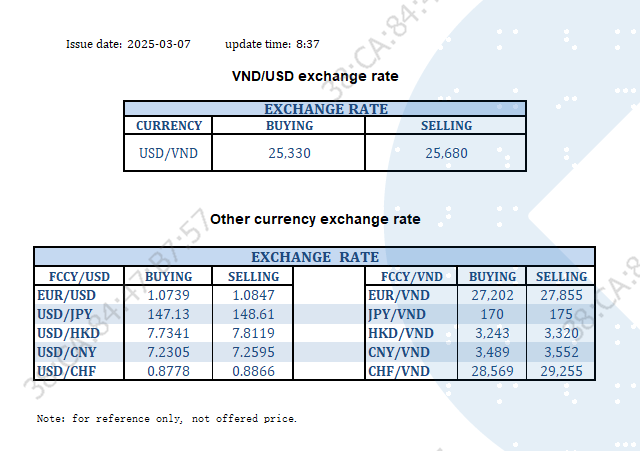 EXCHANGE RATE UPDATE 2025-03-07