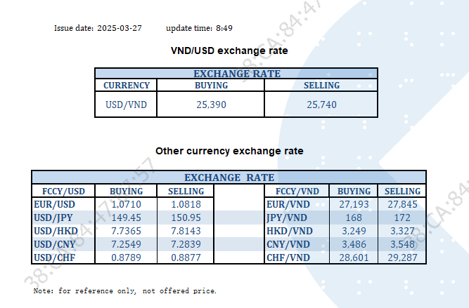 EXCHANGE RATE UPDATE 2025-03-27