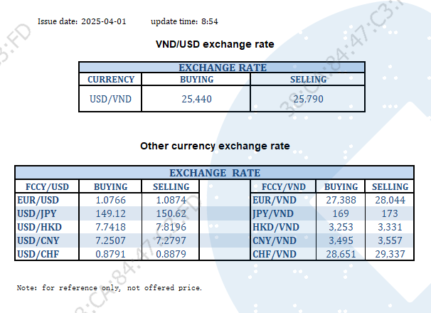 EXCHANGE RATE UPDATE 2025-04-01