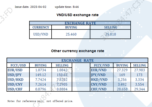 EXCHANGE RATE UPDATE 2025-04-02