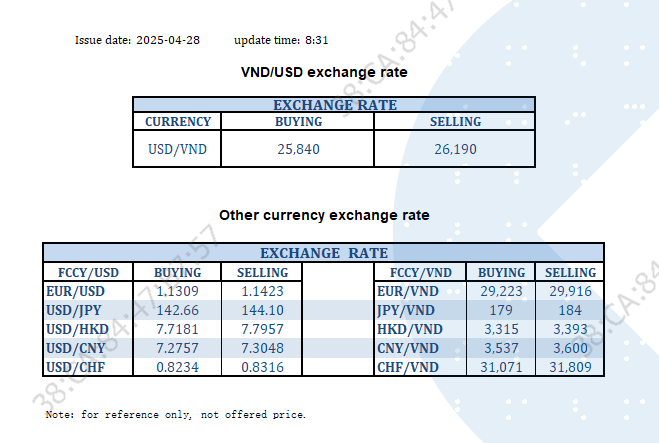 EXCHANGE RATE UPDATE 2025-04-28